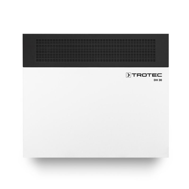 - Dezumidificatorul DH 30 poate fi montat pe perete şi convinge cu o capacitate mare şi la temperaturi scăzute. Dejivrarea automată cu gaz cald face posibilă funcţionarea până la 0°C. De aceea, acest dezumidificator e recomandat pentru păstrarea uscată a aerului din staţiile electrice sau depozitele neîncălzite sau garaje.